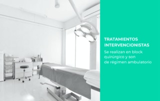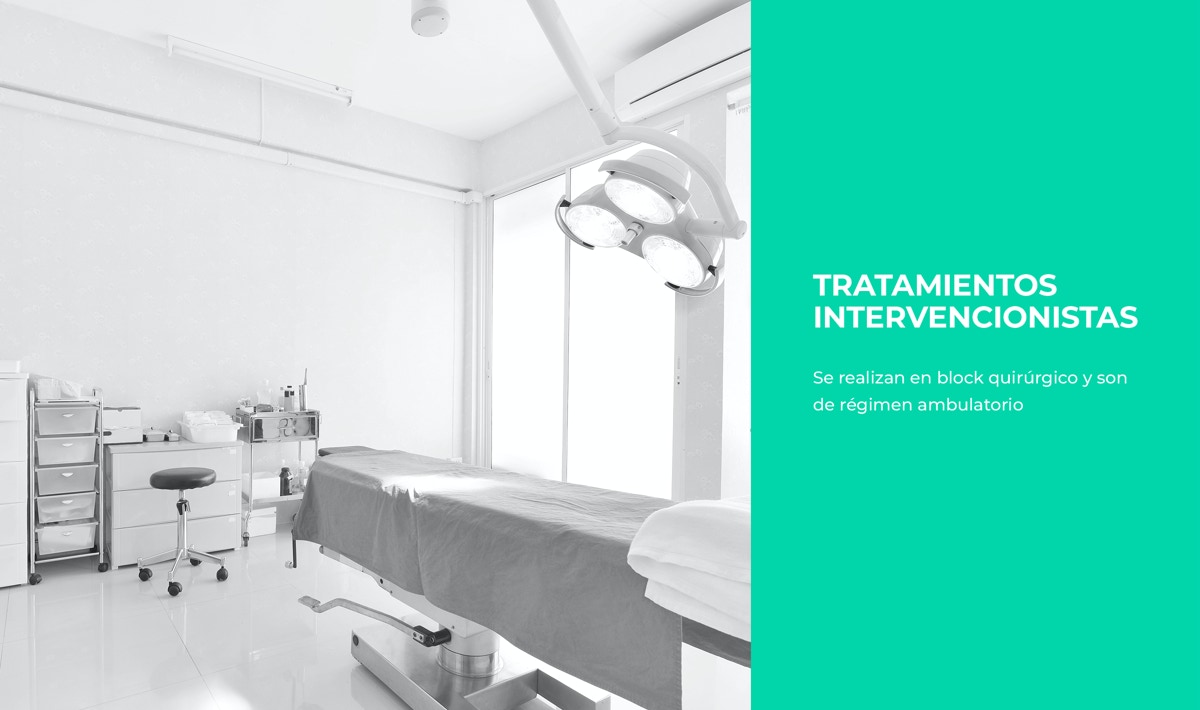 Los tratamientos intervencionistas se realizan en el block quirúrgico de la clínica o en consultorio, en régimen ambulatorio.